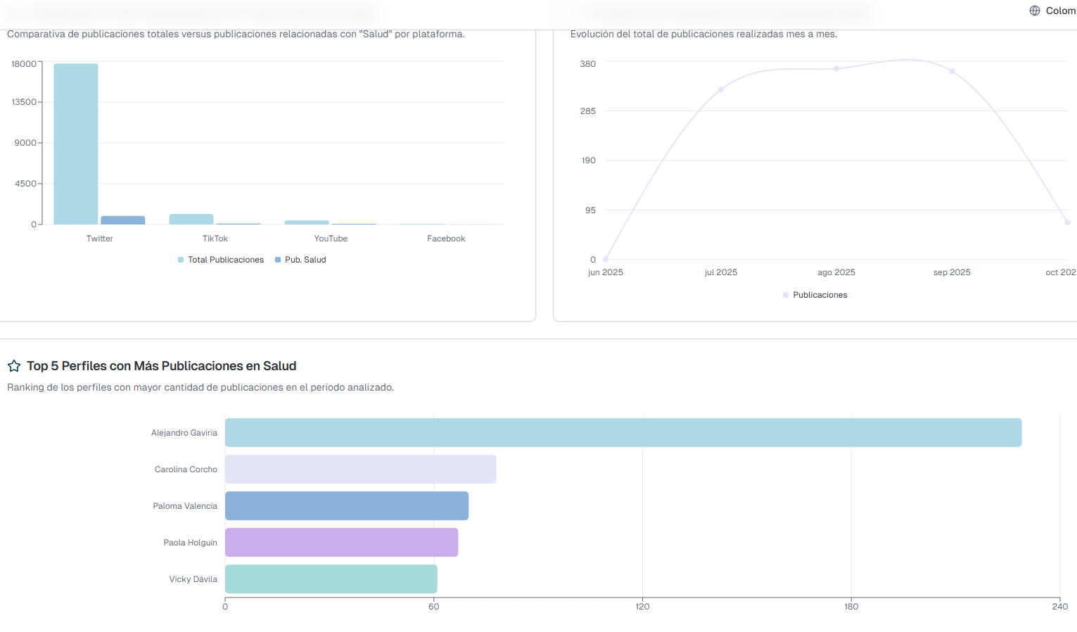 Este panorama permite identificar las plataformas más relevantes para el análisis de tendencias y sugiere dónde enfocar esfuerzos de comunicación y monitoreo en relación con el sector salud.
